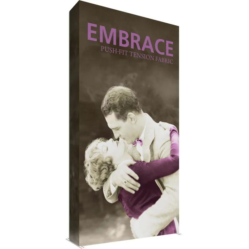 Embrace 5ft Extra Tall Push-Fit Tension Fabric Display By ExpoMan – Embrace™ 5ft extra tall (2 Quad x 4 Quad) is a sleek, collapsible, portable display that delivers style with minimal effort. Embrace 5ft extra tall (2 Quad x 4 Quad) features a sleek, collapsible white frame with channel bars that hold push-fit fabric graphics offered with or without endcaps. No tools are required for assembly. The lightweight and highly portable display packs away as easily as it sets up for the ideal tradeshow, event or retail display!